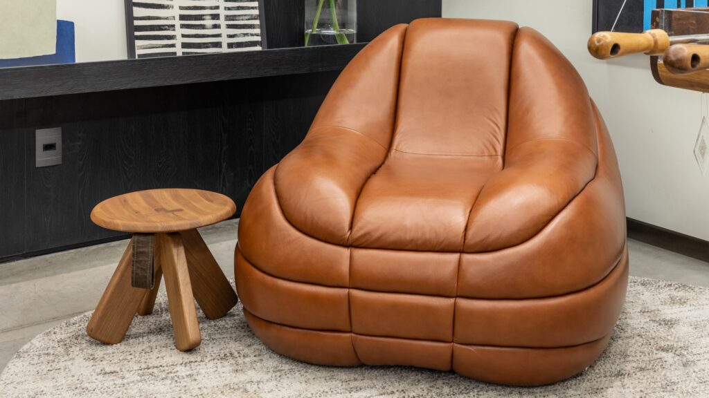 Assinada pelo Estúdio Mula Preta, a poltrona de curvas marcantes expressa a maturidade do design nacional. O volume preciso evidencia o corpo que ela recebe, funcionando tanto como peça protagonista quanto integrada a paletas neutras, sem perder expressão.